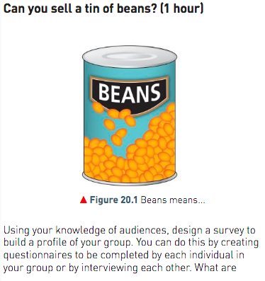 - the creation of a brand image for your BEANS, designs, comparisons with what is on market, logo, fonts, colour scheme, tin size, slogan etc